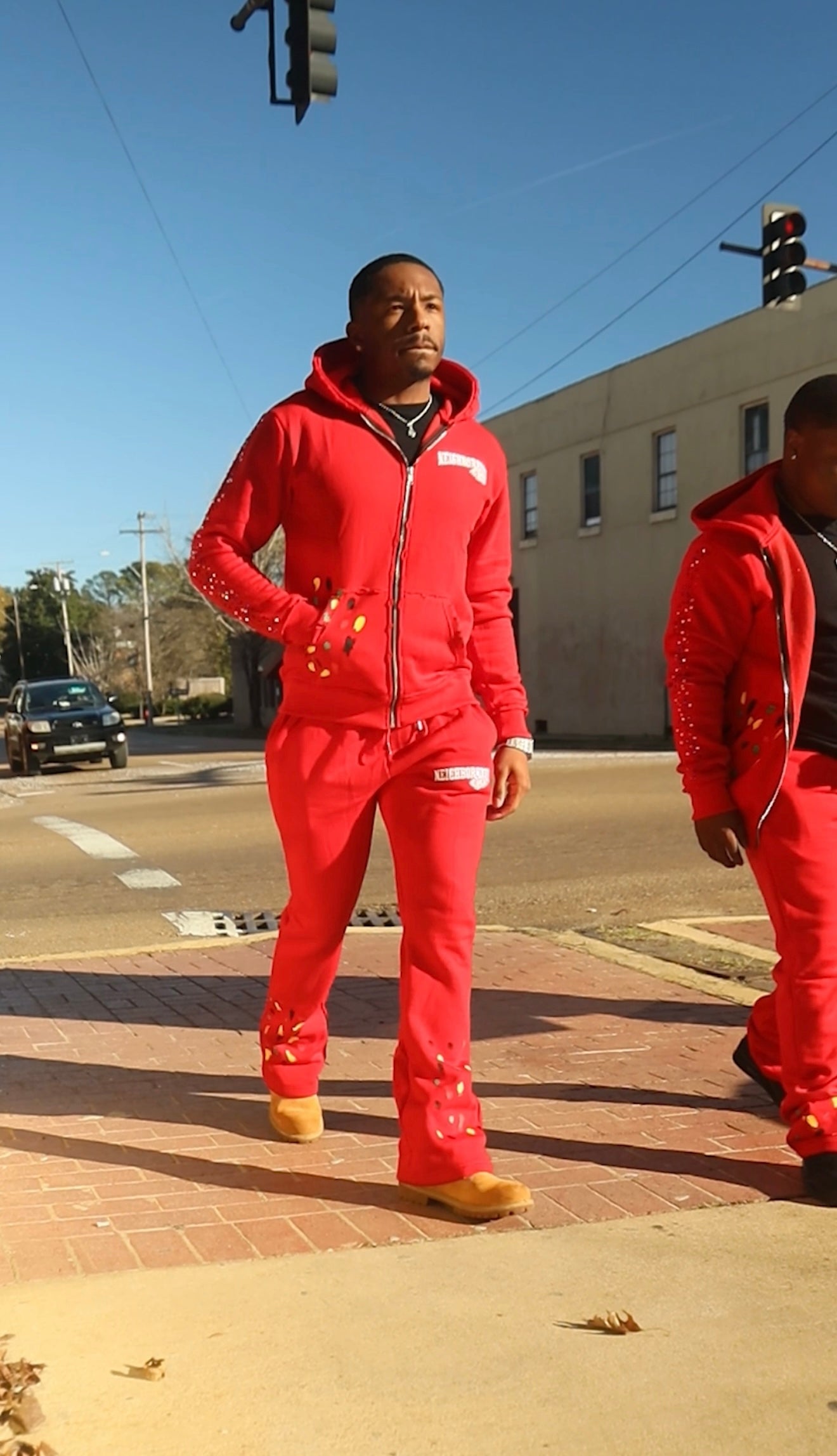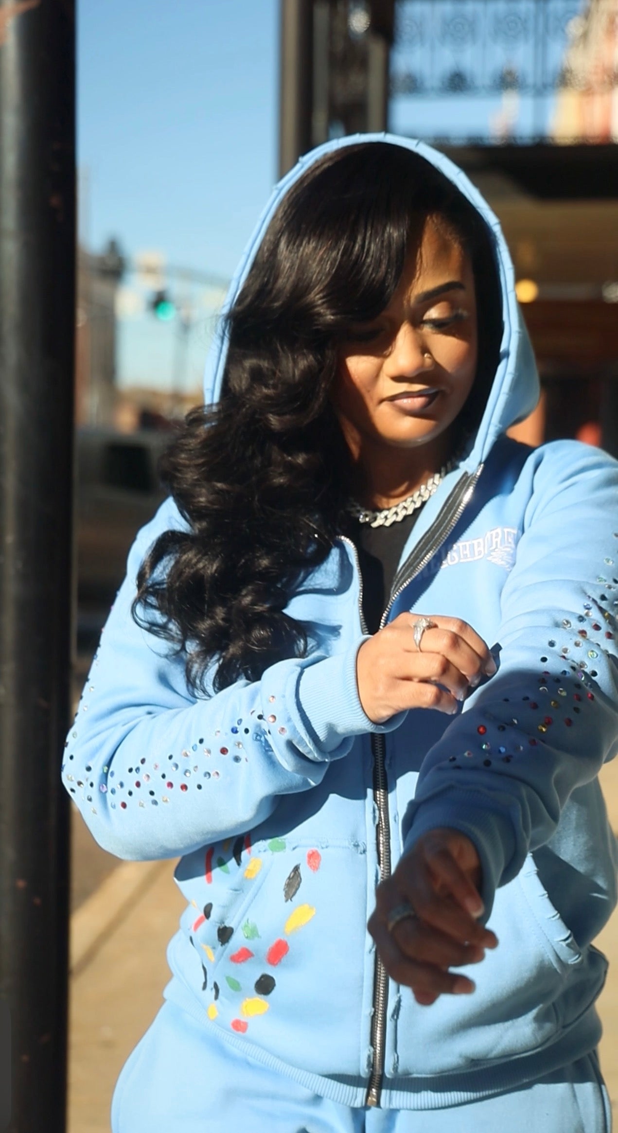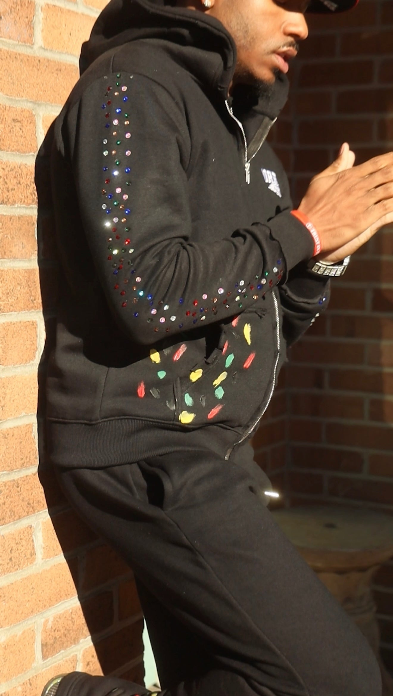 A refined take on deconstructed luxury streetwear. This premium fleece hoodie and jogger set features intentional distressing along the zipper and sleeves, elevated with hand-placed rhinestone detailing and abstract paint accents. Designed to balance raw edge with polished craftsmanship, this set delivers statement style without sacrificing comfort.
